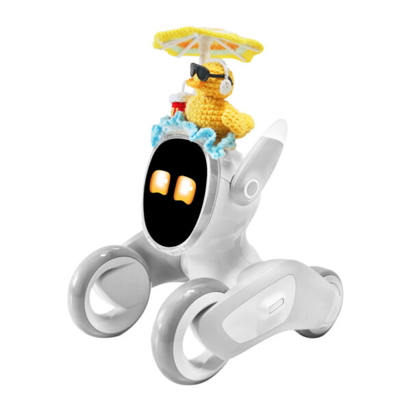 This knitted costume for the Loona Premium robot is an easy way to give your device a light, vacation-inspired look. Made from soft, pleasant-to-the-touch fabric, it is designed to fit the robot’s structure snugly without hindering its movements or sensor operation. The lightweight, hand-knitted design makes the costume easy to put on and take off, allowing you to quickly change the robot’s look. The decorative element featuring a duck, an umbrella, and summery accents makes Loona look even more unique and attracts attention during daily play and interactions with family members.