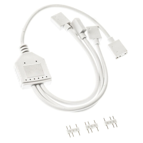 The Kolink ARGB 3-Pin Splitter Cable allows you to extend an ARGB source from the motherboard to create an aesthetically pleasing lighting system. It features standard 3-pin addressable RGB headers (5VDG), splitting one female connector into three female connectors. Three male-to-male adapters are included.