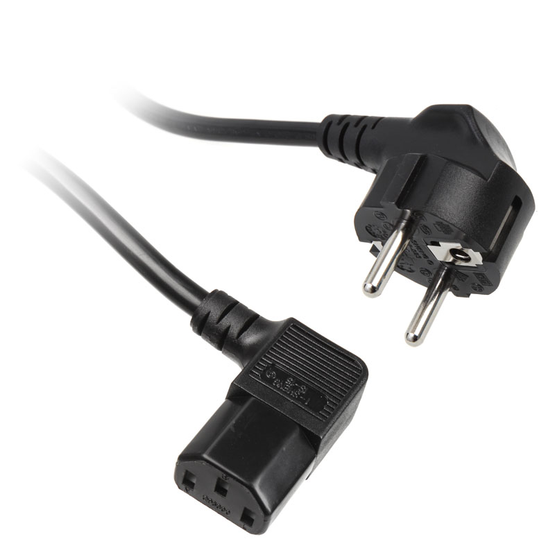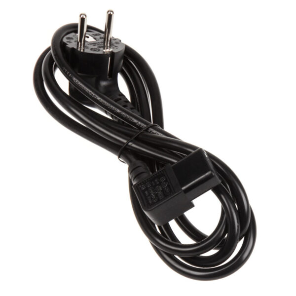 Standard power cable with Schuko plug and angled C13 connector („cold device plug”), 1.8 m length, 0.75 mm², max. 10 Ampere