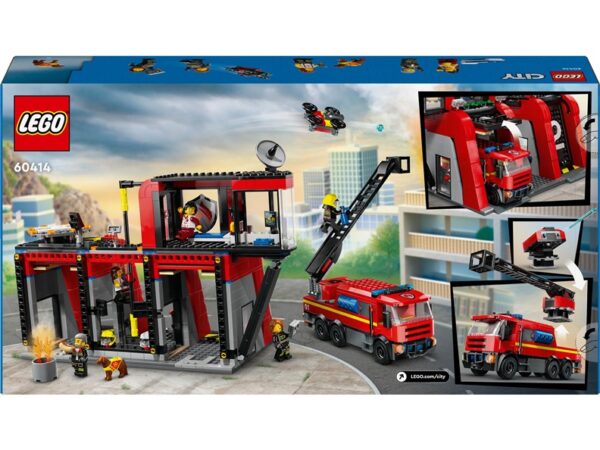 Prekės tipas- Konstruktoriai. Prekės ženklas- LEGO®. Artikulas- 60414. Kolekcija- City. Medžiaga- Plastikas. Modelis- Fire Station with Fire Engine. Įspėjimas dėl žaislų- Netinka vaikams iki 3 metų.. Rekomenduojamas amžius nuo- 6 m..