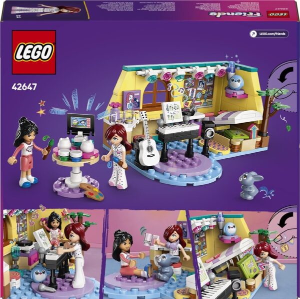 Prekės tipas- Konstruktoriai. Prekės ženklas- LEGO®. Artikulas- 42647. Kolekcija- Friends. Medžiaga- Plastikas. Modelis- Paisley’s Room. Komplekto dalių skaičius- 199. Įspėjimas dėl žaislų- Yra smulkių detalių. Pavojus užspringti!. Rekomenduojamas amžius nuo- 6 m..