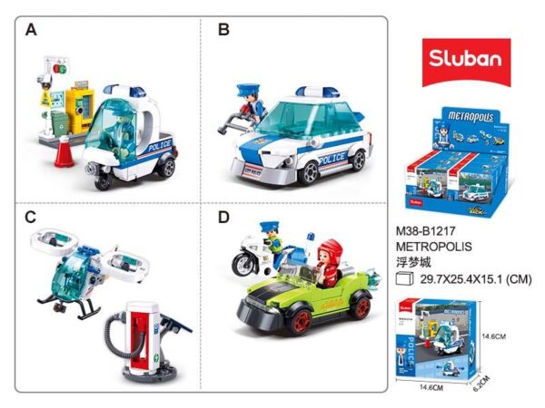Prekės ženklas- Sluban. Artikulas- M38-B1217. Medžiaga- Plastikas. Modelis- Metropolis. Įspėjimas dėl žaislų- Pašalinkite visą pakuotę, tvirtinimo detales prieš perduodant šį žaislą vaikui. Ant pakuotės esančią informaciją rekomenduojama išsaugoti. Rekomenduojama naudoti prižiūrint suaugusiems. Gali būti smulkių arba aštrių detalių, kuriomis vaikas gali užspringti arba susižeisti.. Rekomenduojamas amžius nuo- 6 m..