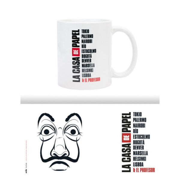 Enter a world full of intrigue and suspense with a mug inspired by the iconic series ‘House of Paper’. This stylish 330ml ceramic mug is the perfect accessory for any fan of this Spanish production, showcasing Salvador Dali’s distinctive mask, which has become a well-known symbol of rebellion in the series.