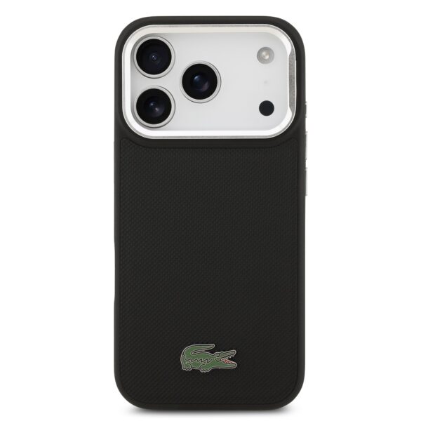 Lacoste Iconic Petit Pique Camera Stand MagSafe dėklas skirtas Apple iPhone 17 Pro juodos spalvos
