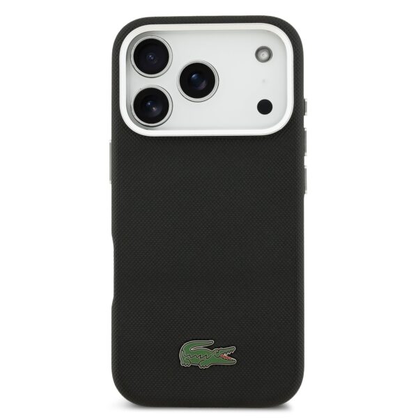 Lacoste Iconic Petit Pique Metal Logo MagSafe dėklas skirtas Apple iPhone 17 Pro juodos spalvos