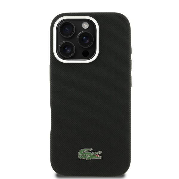 Lacoste PVC Iconic Petit Pique Metal Logo MagSafe dėklas skirtas Apple iPhone 16 Pro juodos spalvos