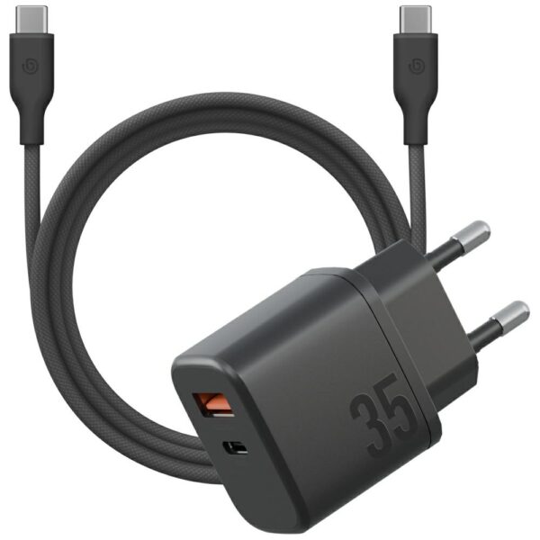 Laidinis įkroviklis Bazic Goport Velox Kit 1xUSB-C 1xUSB-A GaN 35W su pintu kabeliu juodos spalvos
