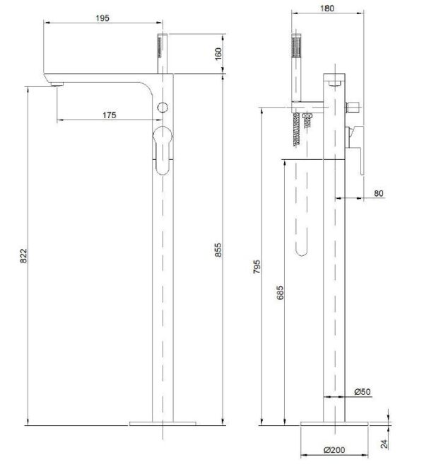 Prekės ženklas- Invena. Montavimo tipas- Montavimas ant grindų. Ilgis- 19.5 cm. Plotis- 18 cm. Aukštis- 85.5 cm. Spalva- Juoda. Medžiaga- Žalvaris. Jungtis- 1/2 colio, 3/4 colio. Pralaidumas- 16.8 l/min. Rankenėlių skaičius- 1. Su dušo žarna- Taip. Ištraukiama galvutė- Ne. Su dušo galvute- Taip. Dušo galvutės režimų skaičius- 1. Privaloma garantija- 24 mėn. Papildoma informacija- Dušo žarnos ilgis 150 cm..