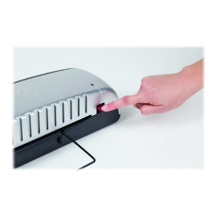 - Laminator feed sensor indicates when a document has been misfed and stops the laminating process, allowing the pouch to be released and realigned