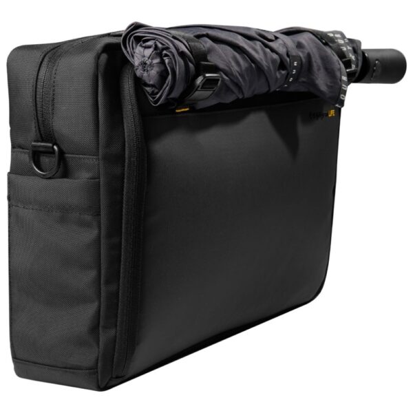 The front part of the bag is more than just a classic pocket. When unzipped, it can serve as a flat surface for packing or a laptop stand – an ideal solution when working on the go. The front buckle not only secures the contents but also allows you to attach a light jacket or umbrella. This is a practical element that increases the bag’s functionality and makes it indispensable for everyday use.