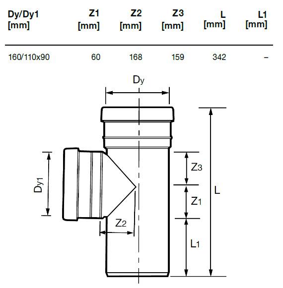 Prekės ženklas- Wavin. Santechninė jungtis, skersmuo- 160 mm, 160 mm, 110 mm. Pasvirimo kampas- 90 – 90°. Lanksti- Ne. Medžiaga- Polivinilchloridas (PVC). Spalva- Ruda. Skirta naudoti- Lauko kanalizacijai.