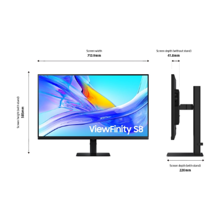 | Summary | Samsung S80UD. Display diagonal: 81.3 cm (32"), Display resolution: 3840 x 2160 pixels, HD type: 4K Ultra HD, Display technology: LCD, Response time: 5 ms, Native aspect ratio: 16:9, Viewing angle, horizontal: 178°, Viewing angle, vertical: 178°. Built-in USB hub, USB hub version: 3.2 Gen 1 (3.1 Gen 1). VESA mounting, Height adjustment. Product colour: Black |