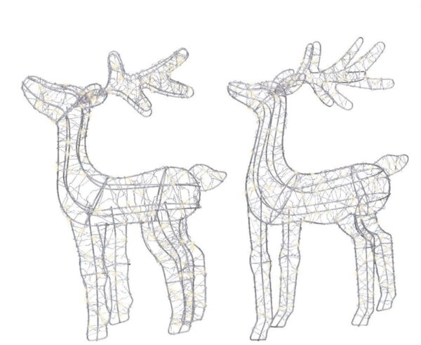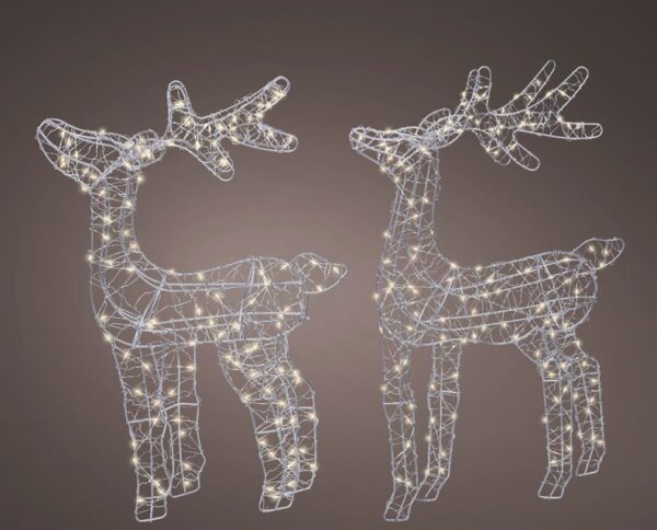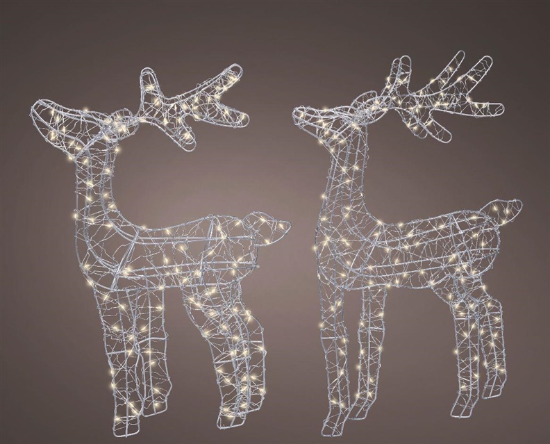 Prekės ženklas- -. Artikulas- 495026. Ilgis- 34 cm. Plotis- 5 cm. Aukštis- 56 cm. Spalva- Balta. Medžiaga- Metalas. Lemputės tipas- LED. Lempučių skaičius- 260. Apsaugos laipsnis (IP)- IP44. Privaloma garantija- 24 mėn. Garantija juridiniams asmenims- 12 mėn. Papildoma informacija- Pakuotėje 2vnt. elnių, kiekvienam naudojamos 3AA baterijos.