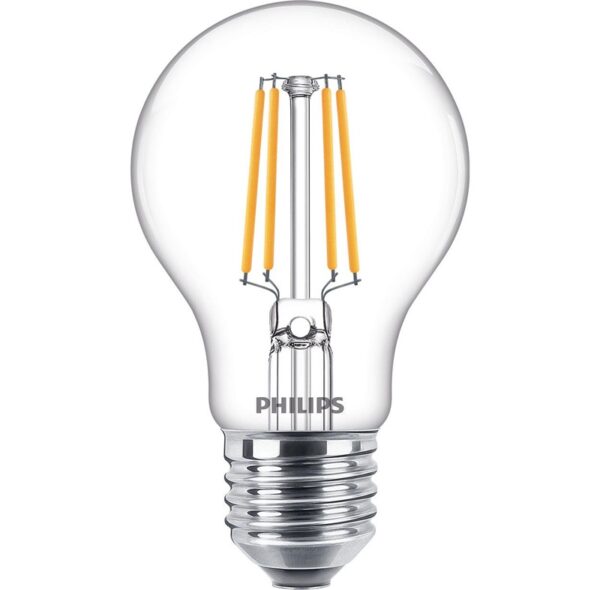 Prekės tipas- Lemputės. Artikulas- 929001890055. Prekės ženklas- Philips. Lemputės tipas- LED. Ilgis- 60 – 60mm. Plotis- 60 – 60mm. Aukštis- 104 – 104mm. Įtampa- 220 – 240V. Cokolis- E27. Šviesos srautas- 470 – 470lm. Lemputės forma- Standartinė. Šviesos spalva- Šiltai balta. Spalvos temperatūra- 2700 – 2700°K. Paviršiaus/stiklo tipas- Skaidrus. Šviesos srauto reguliavimas- Ne. Lemputės formos žymėjimas- A60. Spalvos perteikimo indeksas (CRI)- 80. Lemputės efektyvumas- 109 lm/W. Energinio efektyvumo klasė- F. Energijos sąnaudos, kWh/1000 h- 5. Vidutinė veikimo trukmė- 15000 h. Su reflektoriumi- Ne. Belaidis valdymas (Wi-Fi)- Ne. Su valdymo pulteliu- Ne. Galima nuotolinio valdymo funkcija- Ne. Papildoma informacija- Lygiavertė standartinei 40 W lemputei. Privaloma garantija- 24 mėn. Garantija juridiniams asmenims- 12 mėn.