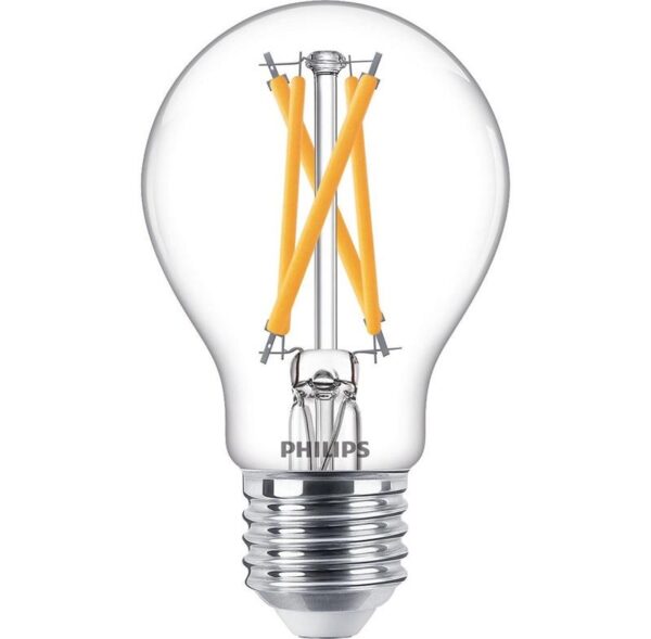 Prekės tipas- Lemputės. Artikulas- 929003010301. Prekės ženklas- Philips. Lemputės tipas- LED. Ilgis- 60 – 60mm. Plotis- 60 – 60mm. Aukštis- 104 – 104mm. Įtampa- 220 – 240V. Cokolis- E27. Šviesos srautas- 806 – 806lm. Lemputės forma- Standartinė. Šviesos spalva- Šiltai balta. Spalvos temperatūra- 2200 – 2700°K. Paviršiaus/stiklo tipas- Skaidrus. Šviesos srauto reguliavimas- Taip. Lemputės formos žymėjimas- A60. Spalvos perteikimo indeksas (CRI)- 80. Lemputės efektyvumas- 115 lm/W. Energinio efektyvumo klasė- D. Energijos sąnaudos, kWh/1000 h- 6. Vidutinė veikimo trukmė- 15000 h. Su reflektoriumi- Ne. Belaidis valdymas (Wi-Fi)- Ne. Su valdymo pulteliu- Ne. Galima nuotolinio valdymo funkcija- Ne. Papildoma informacija- Lygiavertė 60 W standartinei lemputei. Privaloma garantija- 24 mėn. Garantija juridiniams asmenims- 12 mėn.