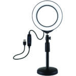 LED žiedinė lempa 12cm, su trikoju staliniu stovu iki 21.8cm, USB,
