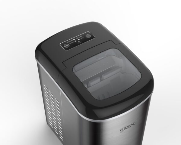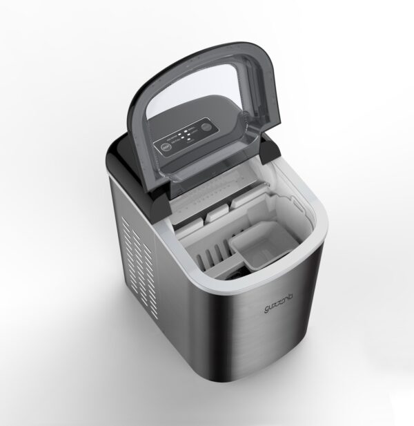 - Kompaktiškas, elegantiškas dizainas su skaidriu dangteliu, kad būtų lengva vizualiai apžiūrėti ledo gamybos procesą