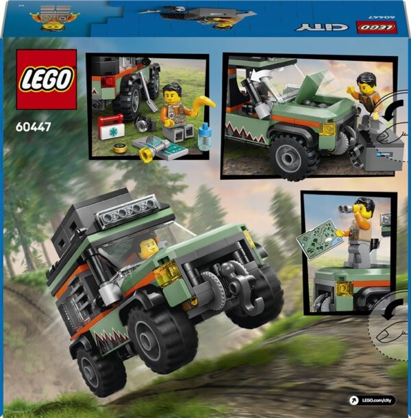 Prekės tipas- Konstruktoriai. Prekės ženklas- LEGO®. Artikulas- 60447. Kolekcija- City. Medžiaga- Plastikas. Modelis- Off-Road 4×4 Mountain Truck. Komplekto dalių skaičius- 221. Įspėjimas dėl žaislų- Yra smulkių detalių. Pavojus užspringti!. Rekomenduojamas amžius nuo- 6 m..