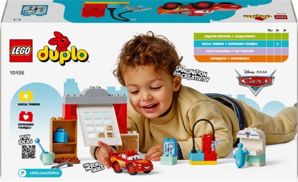 Prekės tipas- Konstruktoriai. Prekės ženklas- LEGO®. Artikulas- 10456. Kolekcija- DUPLO®. Medžiaga- Plastikas. Modelis- McQueen’s Visit to Doc’s Garage. Įspėjimas dėl žaislų- Naudoti tik vaikui tinkamame gylyje ir prižiūrint suaugusiems.. Rekomenduojamas amžius nuo- 2 m.. Rekomenduojamas amžius iki- 5 m..