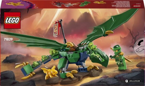 Prekės tipas- Konstruktoriai. Prekės ženklas- LEGO®. Artikulas- 71829. Kolekcija- Ninjago. Medžiaga- Plastikas. Modelis- Lloyd’s Green Forest Dragon. Komplekto dalių skaičius- 128. Įspėjimas dėl žaislų- Yra smulkių detalių. Pavojus užspringti!. Rekomenduojamas amžius nuo- 6 m..