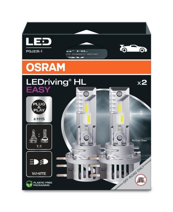 Prekės ženklas- Osram. Artikulas- 64176DWESY. Lemputės tipas- LED. Lemputės tipas pagal EEK – H15. Įtampa- 12 V. Spalva- Balta. Cokolis- PGJ23T-1. Lemputės galingumas- 16 W. Spalvos temperatūra- 6500 – 6500°K. Vienetai pakuotėje- 2.