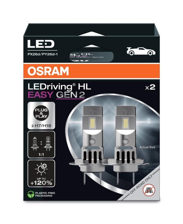 Prekės ženklas- Osram. Artikulas- 64210DWESY2-2HB. Lemputės tipas- LED. Lemputės tipas pagal EEK – H7. Įtampa- 12 V. Spalva- Balta. Cokolis- PX26d. Lemputės galingumas- 16 W. Spalvos temperatūra- 6500 – 6500°K. Šviesos srautas (±15%)- 2000 lm. Vienetai pakuotėje- 2.