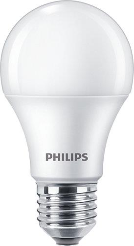 Prekės tipas- Lemputės. Artikulas- 8718699775544. Prekės ženklas- Philips. Lemputės tipas- LED. Ilgis- 108 – 108mm. Plotis- 60 – 60mm. Aukštis- 60 – 60mm. Įtampa- 220 – 240V. Cokolis- E27. Šviesos srautas- 1055 – 1055lm. Lemputės forma- Apvali/burbuliukas. Šviesos spalva- Geltona. Spalvos temperatūra- 2700 – 2700°K. Paviršiaus/stiklo tipas- Matinis. Šviesos srauto reguliavimas- Ne. Lemputės formos žymėjimas- A60. Spalvos perteikimo indeksas (CRI)- 80. Energinio efektyvumo klasė- F. Energijos sąnaudos, kWh/1000 h- 10. Vidutinė veikimo trukmė- 15000 h. Vienetai pakuotėje- 3. Privaloma garantija- 24 mėn. Garantija juridiniams asmenims- 12 mėn.