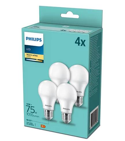 Lemputė Philips LED, A60, 2700 °K, E27, 10 W, 1055 lm 4 vnt