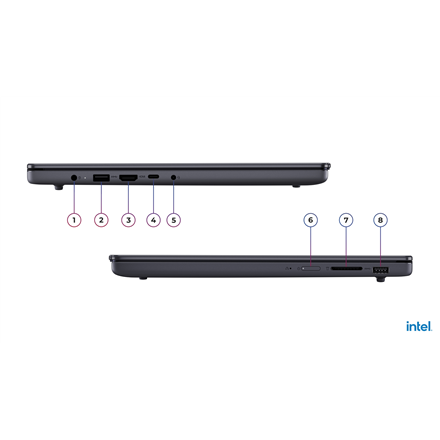 | Kitos savybės | 2x USB-A (USB 5Gbps/USB 3.2 Gen 1); 1x USB-C (USB 5Gbps/USB 3.2 Gen 1), with USB PD 3.0 and DisplayPort 1.2; 1x Headphone/microphone combo jack (3.5mm); 1x SD card reader; 1x Power connector |