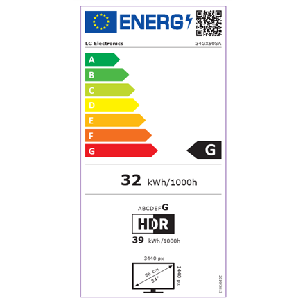 LG | 34GX90SA-W | 34 | OLED | 21:9 | 240 Hz | 1 ms | 3440 x 1440 pixels | 250 cd/m² | HDMI ports quantity 2 | White