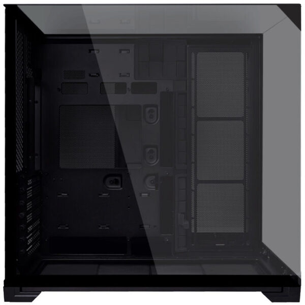 The motherboard tray of the Lian Li O11 Vision Compact supports an E-ATX motherboard up to 280 mm wide. Thanks to specific cutouts, the mid tower also supports back-connect motherboards such as the ASUS BTF or MSI Project Zero for a flawless aesthetic.