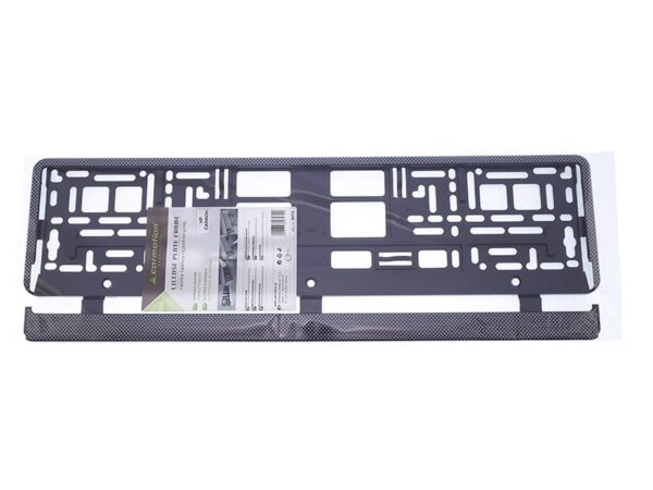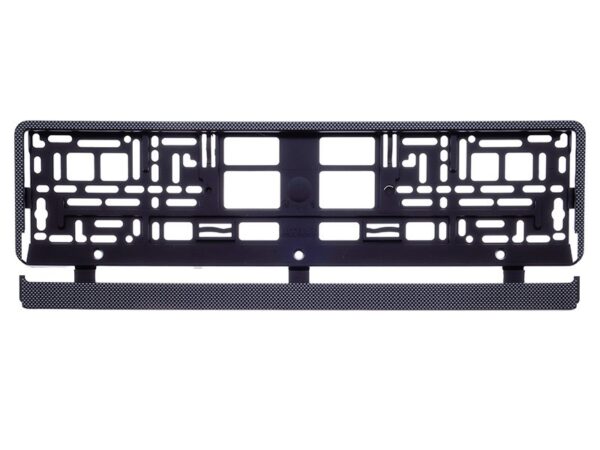 Frame allows a stable mounting of the license plate.The frame is provided with mounting holes thanks to which there is no need to drill into the car body Set includes a snap strip to protect the board from falling out. Made of high-quality plastic, covered with varnish that is resistant to the harmful effects of weather. Black frame with a carbon finish. Frame can be assembled / disassembled many times. Dimensions: