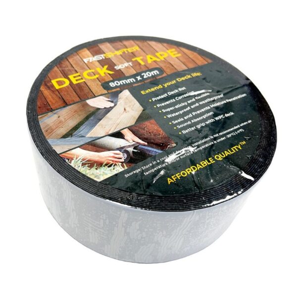 Prekės ženklas- Fastshifter. Skirta apdailos darbams- Vidaus ir lauko. Ilgis- 20 m. Plotis- 80 mm. Spalva- Juoda. Lipnios juostos tipas- Vienpusė. Armuota- Taip. Atsparus drėgmei- Taip. Papildoma informacija- Vienpusė lipni juosta „FastShifter Deck Soft Tape” terasų lagėms apsaugoti bei užtikrinti ilgaamžiškumą. Pasižymi iškirtinėmis savybėmis, gerai limpanti, sustiprinta armuota juosta..