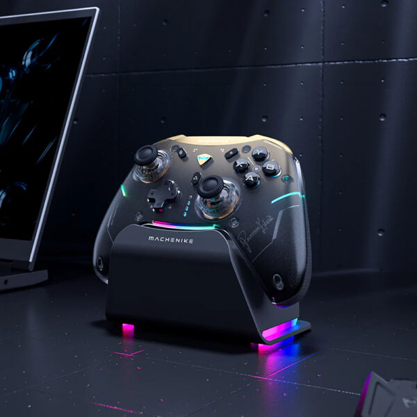 Machenike G5Pro Premium Edition Wireless Game Controller with Charging Station – Black and Gold