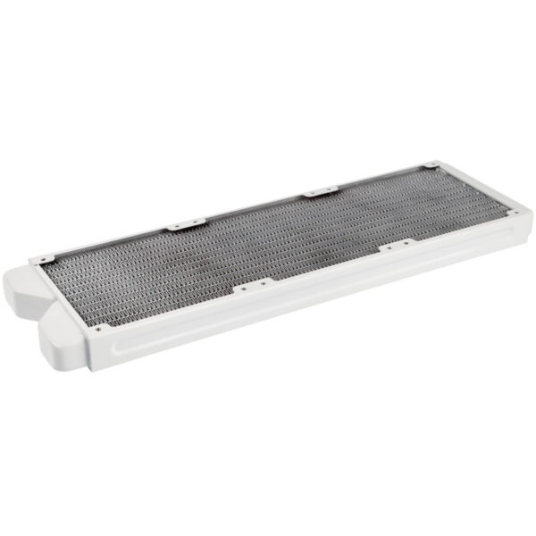 White 360mm radiator in slim format, only 27mm thick, for both sides 3x 120mm silent fans, 16 FPI, dual pass design