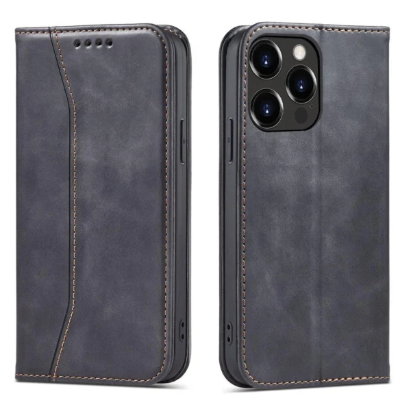 Magnet Fancy Apple iPhone 14 atverčiamas su stoveliu dėklas telefonui juodos spalvos