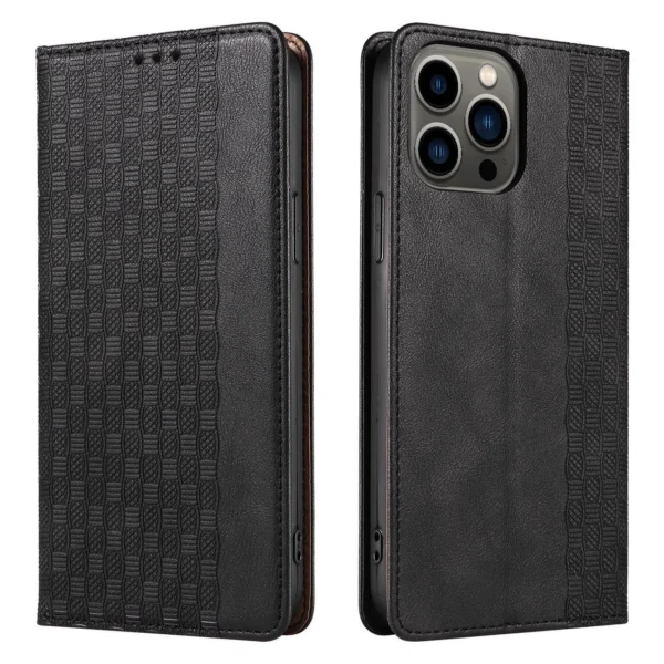 iPhone 14 Series Magnet Strap Case Flip cover with wallet and stand function in black