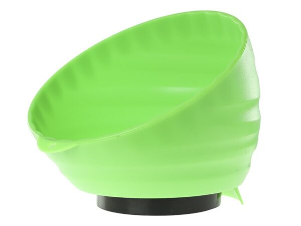 The magnetic bowl is made of plastic. This material is resistant to mechanical damage or deformation. It is equipped with a solid magnet, which makes it easy to attach it, for example, to the column of a lift, or to the door or fender of the car you are working on. The magnet is embedded in a material that is completely safe for any surface. The product will help you store all the small elements that you never have anywhere to put, e.g. screws, washers, sockets, etc.