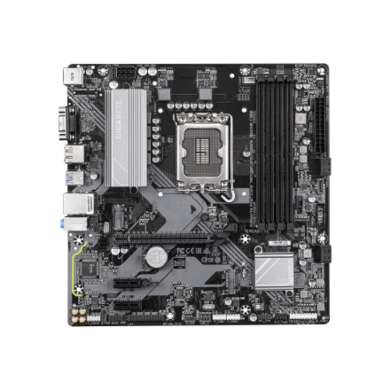 | Summary | GIGABYTE B760M D3HP Motherboard – Intel Core 14th Gen CPUs, 4+1+1 Phases VRM, up to 5600MHz DDR5, 2xPCIe 4.0 M.2, GbE LAN, USB 3.2 Gen 1. Processor manufacturer: Intel, Processor socket: LGA 1700, Compatible processor series: Intel® Celeron®, Intel Core i3 12th Gen, Intel Core i3 13th Gen, Intel Core i3 14th Gen, Intel…. Supported memory types: DDR5-SDRAM, Maximum internal memory: 256 GB, Memory slots type: DIMM. Supported storage drive interfaces: M.2, SATA III, Supported storage drive types: HDD & SSD, RAID levels: 0, 1, 5, 10. Maximum resolution: 4096 x 2304 pixels. Ethernet interface type: Gigabit Ethernet, LAN controller: Realtek RTL8111H |