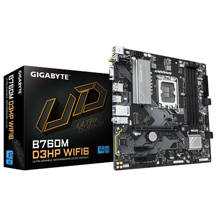 | Summary | GIGABYTE B760M D3HP WIFI6 Motherboard – Supports Intel Core 14th Gen CPUs, 4+1+1 Phases Digital VRM, up to 5600MHz DDR5, 2xPCIe 4.0 M.2, Wi-Fi 6, GbE LAN, USB 3.2 Gen1. Processor manufacturer: Intel, Processor socket: LGA 1700, Compatible processor series: Intel® Celeron®, Intel Core i3 12th Gen, Intel Core i3 13th Gen, Intel Core i3 14th Gen, Intel…. Supported memory types: DDR5-SDRAM, Maximum internal memory: 192 GB, Memory slots type: DIMM. Supported storage drive interfaces: M.2, PCI Express 4.0, SATA III, Supported storage drive types: HDD & SSD, RAID levels: 0, 1, 5, 10. Maximum resolution: 4096 x 2304 pixels. Ethernet interface type: Gigabit Ethernet, LAN controller: Realtek RTL8111H, Top Wi-Fi standard: Wi-Fi 6 (802.11ax) |