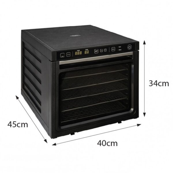 - Šilumos palaikymo funkcija. Ši unikali maisto produktų džiovyklės funkcija puikiai pasitarnaus tada, kai maistas džiovyklėje būna jau išdžiuvęs, tačiau trūksta laiko viską išimti ir pabaigti maisto džiovinimą. Pasirinkus šilumos palaikymo funkciją, maisto džiovyklėje bus palaikoma šilta temperatūra, jog maistas labiau nedžiūtų, tačiau tuo pačiu ir nesikauptų drėgmė, kol jūs galėsite surinkti džiovinamus produktus.