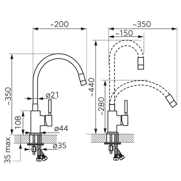 Prekės ženklas- Ferro. Montavimo tipas- Montuojamas ant paviršiaus. Spalva- Juoda. Medžiaga- Nerūdijantysis plienas. Jungtis- 3/8 colio. Rankenėlių skaičius- 1. Ištraukiama galvutė- Ne. Privaloma garantija- 24 mėn.