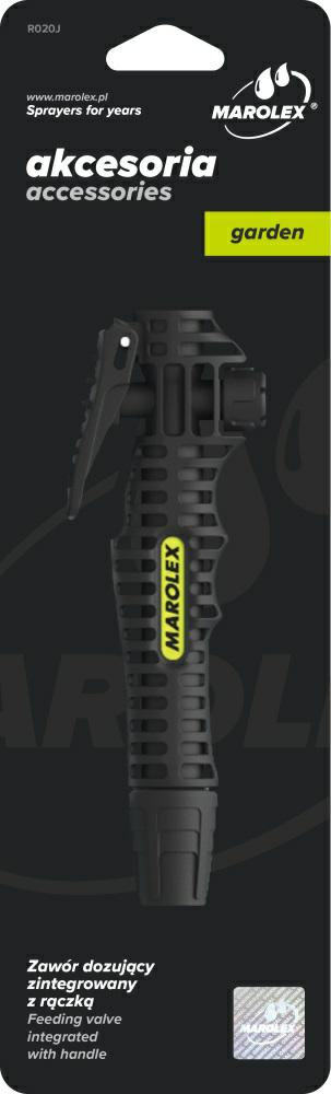 Vožtuvas pasižymi sustiprinta mechanine konstrukcija ir specialia skysčio srauto sistema, suprojektuota taip, kad būtų užtikrintas mažiausias srauto pasipriešinimas ir puiki purškiamo skysčio srovė. Tinka visiems kompresinių ir kuprinių tipo purkštuvų modeliams bei visiems Marolex purškimo antgalių modeliams. Pakeitė R020c vožtuvo modelį, gamintą 1987–2001 metais. – dozavimo vožtuvas komplekte su 3/8″ sriegiu – turi vidinį R40 filtrą