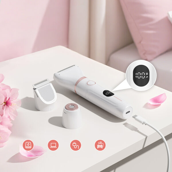 The 3-in-1 system with interchangeable heads allows you to conveniently adjust the trimmer to different body parts, making grooming simpler and more consistent.