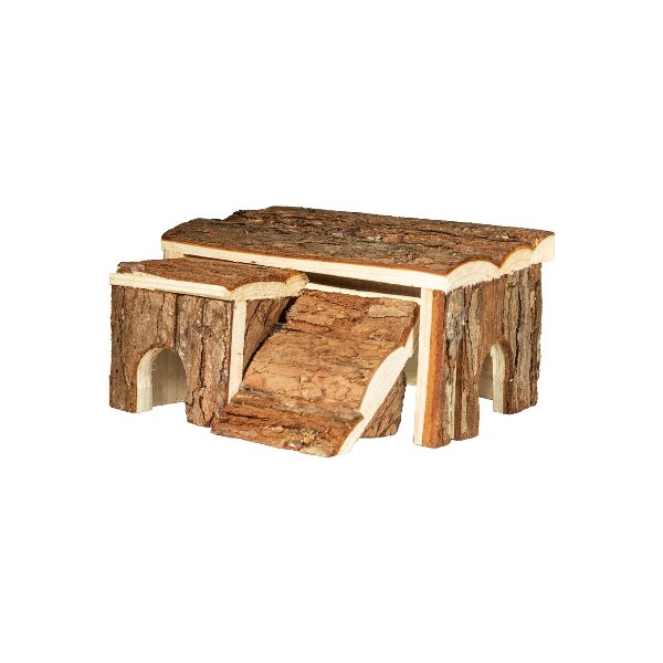Pasirūpinkite savo augintinio pramogomis ir gera savijauta. Žiurkėno namelis yra būtinas jūsų žiurkėno narve. Žiurkėno namelis pagamintas iš neapdorotos spygliuočių medienos, kuri nėra nei impregnuota, nei lakuota, todėl yra visiškai saugi. Tai puikus prieglobstis graužikams, taip pat gali būti naudojama nagams ar dantims dilinti. Šio modelio išmatavimai: 19 x 19 x 7,5 cm. Namelis neturi grindų, todėl jį lengva valyti – tereikia pakelti. Konstrukcija yra stabili, todėl nėra rizikos, kad augintinis netyčia apvers namą. Dėl mažo dydžio rekomenduojamas mažiems graužikams – nykštukiniams žiurkėnams (kinams, jungar, robowski) ir pelėms.