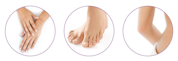 – švelnesnėms rankoms, kojoms ir alkūnėms;