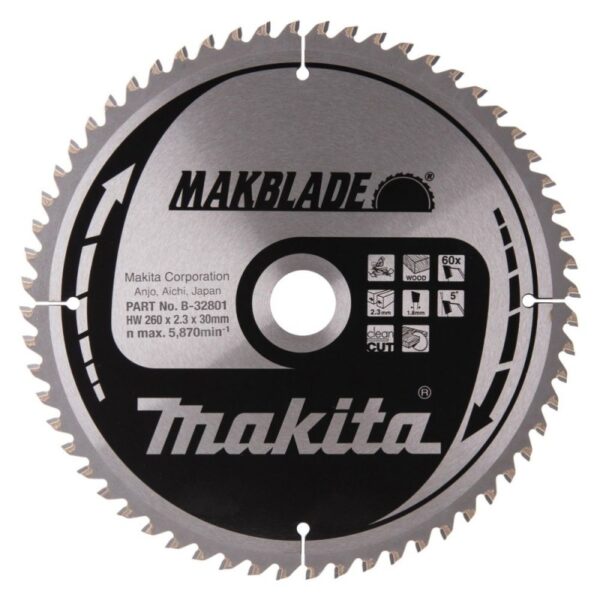 Medžio pjovimo diskas MAKITA 260×2,3x30mm 60T 5°