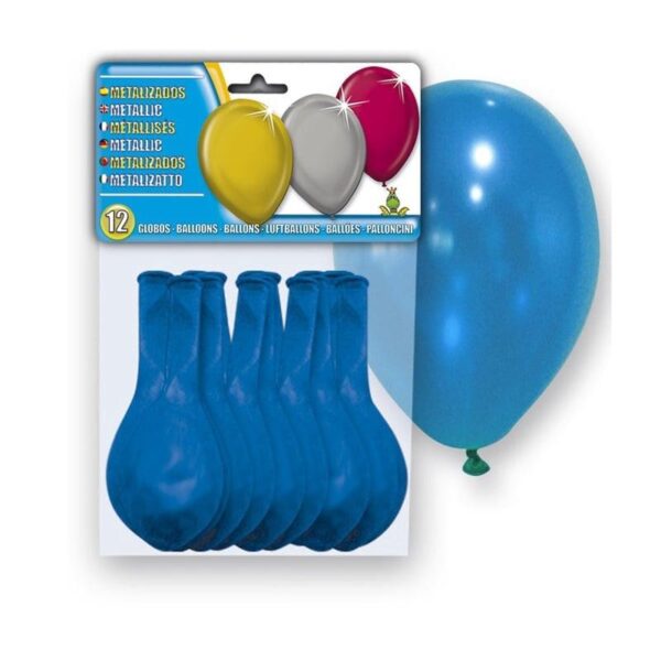 Mėlynos spalvos blizgūs balionai, 12 vnt.
