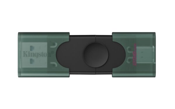 Kingston® DataTraveler® Duo features dual USB connectors that work with both USB Type-A and USB Type-C®* ports for maximum compatibility. The innovative dual moving cap design makes the drive stylish and convenient, with no cap to lose. With capacities up to 256GB**, you can easily access and transfer documents, photos, videos, music and more between your USB-A and USB-C devices with the DT Duo. The product is backed by a five-year limited warranty, free technical support and legendary Kingston® reliability.