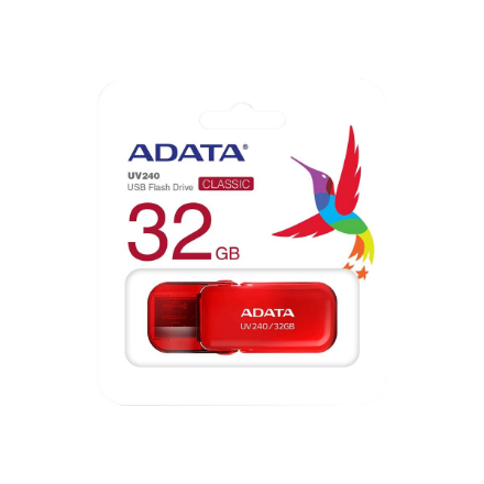 | Summary | ADATA UV240. Capacity: 32 GB, Device interface: USB Type-A, USB version: 2.0. Form factor: Cap. Weight: 7 g. Product colour: Red |